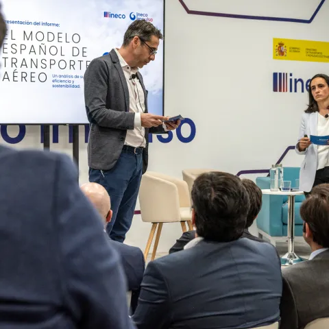Ineco ha presentado el informe El modelo español de transporte aéreo: un análisis de su eficiencia y sostenibilidad, que confirma a España como el caso de éxito más sólido en el panorama aéreo europeo. Con más de 309 millones de pasajeros y 2,36 millones de operaciones en 2024, nuestro país ha superado los niveles prepandemia y se posiciona como el principal mercado aéreo de Europa, por delante de Reino Unido, Alemania, Francia o Italia. Un transporte que genera en España un impacto económico total de 156.000 millones de euros (10,8 % del PIB) y más de 2 millones de empleos (9,6 % del empleo nacional), lo que sitúa al país como líder en Europa en términos de impacto económico del sector.