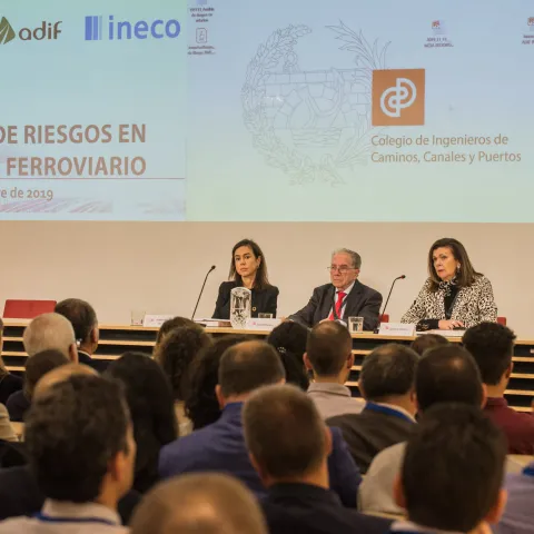 Máxima afluencia en la inauguración del curso “Análisis de riesgos en el sector ferroviario”, organizado por Ineco, Adif y el Colegio de Ingenierios de Caminos, Canales y Puertos.