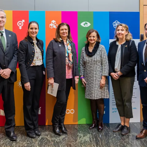La Alta Comisionada para la Agenda 2030, Cristina Gallach, y la presidenta de Ineco, Carmen Librero, han presentado el Plan Agenda 2030 en un acto celebrado en Ágora en el que se ha puesto de manifiesto la apuesta de Ineco para contribuir, como empresa pública, al cumplimiento de los ODS. Carlos Sallé, director de Políticas Energéticas y Cambio Climático de Iberdrola; Ana Benavides, directora general de la Fundación Lealtad; Cristina Sánchez, subdirectora de Red Española de Pacto Mundial; e Iván Hernández, gerente técnico de Ineco encargado del Proyecto RONIN, también participaron en la jornada.