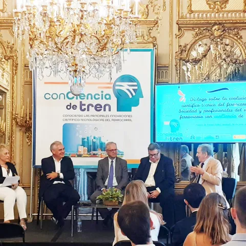 Ineco ha participado este jueves en un encuentro Impulsado por la Fundación de los Ferrocarriles Españoles (FFE) para trasladar a la sociedad la evolución e innovación del ferrocarril. Bajo el nombre ‘conCiencia de Tren’, este proyecto tiene como objetivo fomentar en la sociedad española el conocimiento de la cultura científica, tecnológica e innovadora, utilizando como eje vertebrador el transporte ferroviario.