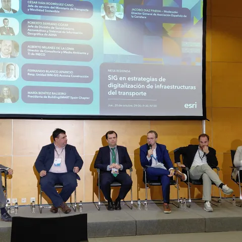 Ineco ha participado en la mesa redonda “SIG en estrategias de digitalización de infraestructuras del transporte”, celebrada en el marco de la Conferencia Esri España 2025, junto a representantes del Ministerio de Transportes y Movilidad Sostenible, AENA, ACCIONA y buildingSMART Spanish Chapter.