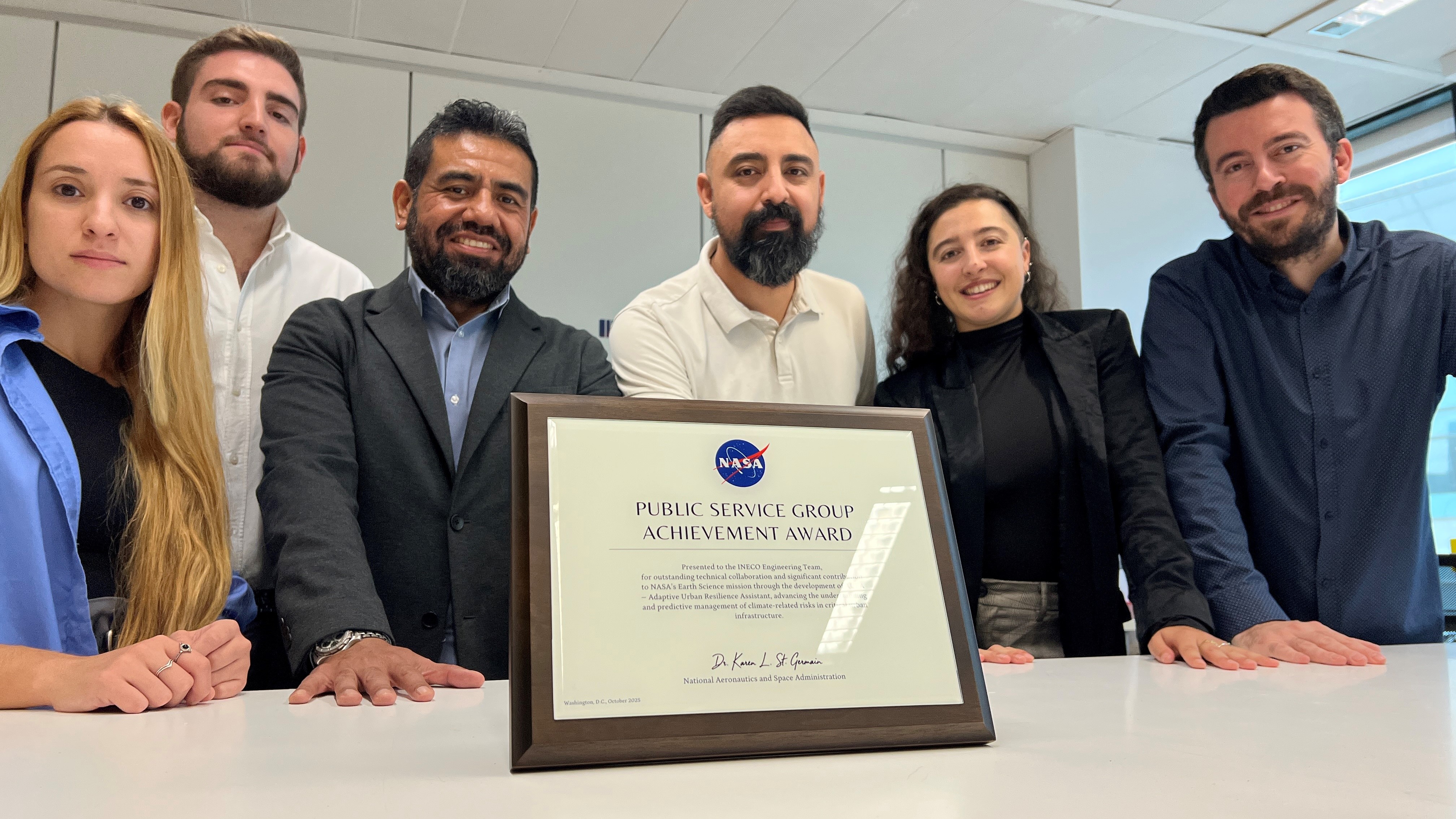 La National Aeronautics and Space Administration (NASA) ha reconocido con el Public Service Group Achievement Award al equipo de Ineco responsable de desarrollar AURA, una solución tecnológica de vanguardia orientada a la resiliencia climática y la protección de infraestructuras críticas.