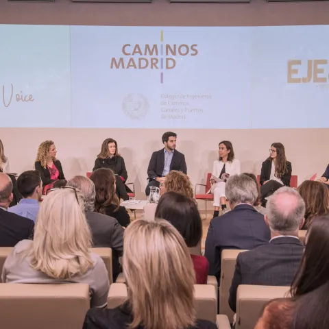 La presidenta de Ineco, Carmen Librero, ha participado en la Jornada de Movilidad “Rompiendo Barreras”, organizada por el Colegio de Ingenieros de Caminos, Canales y Puertos de Madrid, en colaboración con FeMale Voice y Eje&Con, y que ha tenido lugar el 19 de noviembre en Madrid. Lola Ortiz, Decana del Colegio de Ingenieros de Caminos, Canales y Puertos de Madrid y directora general de Planificación e Infraestructuras de Movilidad en el Ayuntamiento de Madrid, ha sido la encargada de la apertura de una jornada en la que se ha debatido sobre los retos y las tendencias en el sector de la movilidad en su conjunto y, más concretamente, desde la perspectiva de algunas de las mujeres más relevantes del sector. La presidenta de Ineco ha compartido mesa de debate con Isabel Pardo, presidenta de Adif; Teresa Benet, International Business Development de Metro Tenerife; Paula Baeza, Business Development & Finance de Zeleros (Hyperloop); y David Pistoni, Cofounder & CEO de Zeleros (Hyperloop).