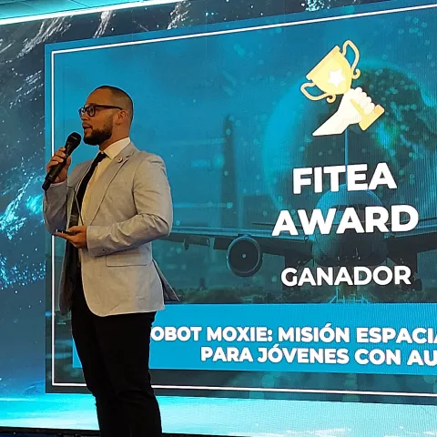 El presidente de Ineco, Sergio Vázquez Torrón, ha sido el encargado de entregar el FITEA Award 2024 a Robot MOXIE, un proyecto educativo que propone utilizar un asistente virtual como acompañante emocional y facilitador del aprendizaje para estudiantes con Trastorno del Espectro del Autismo en una misión espacial simulada.