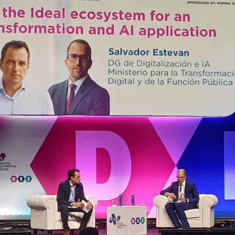 The president of Ineco, Sergio Vázquez Torrón, participated in the Digital Enterprise Show DES 2024, together with Salvador Estevan, General Director of Digitalisation and Artificial Intelligence of the Ministry for Digital Transformation and the Civil Service.