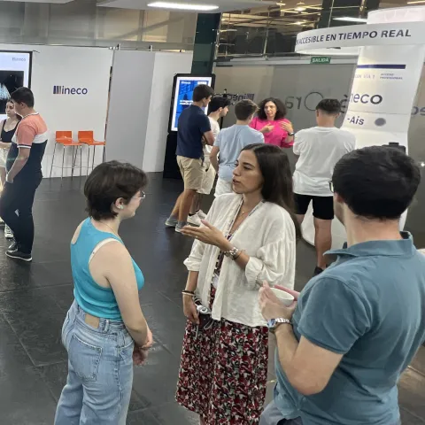 During the day, representatives of Ineco brought engineering closer to future professionals. On the one hand, Inés Ovejero, Product Development Manager and tenth most influential engineer under 35 in Spain according to the '35 under 35' ranking prepared by MWCC and GSM; and Guillaume Chieux, Infrastructure technician and finalist of the Distinctions for Excellence in Internships at Ineco, shared with the students their motivation to become civil engineers. On the other hand, Javier Carvajal, expert in Smart Products; Héctor Sanz, expert in High Speed Maintenance; Aixa Márquez, Building Projects technician; Almudena Herráez, BIM assistant; and Marcos Moreno, CNS - ATM Systems technician, showed the young people how innovation and the most advanced technology that we apply at Ineco can change the way we understand engineering. Our track auscultation trolley thanks to artificial intelligence, DIGAV; the information totem accessible in real time, T-Ais; as well as the development of a video game to promote vertiports and drones in urban environments, were the protagonists of the demonstration part of the meeting.
